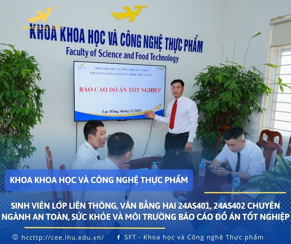 Khoa Khoa học và Công nghệ thực phẩm - Sinh viên các lớp 24AS401, 24AS402 chuyên ngành An toàn, Sức Khỏe và Môi trường báo cáo đồ án tốt nghiệp