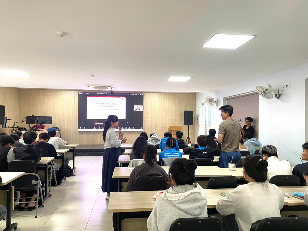 Sự kết nối giữa cô Andrea Gonzales và cô Trần Thị Diệu Hiền đã mang đến cho sinh viên một tiết học mang tính quốc tế cao, kết hợp hài hòa giữa kiến thức học thuật toàn cầu và thực tiễn ứng dụng tại Việt Nam.