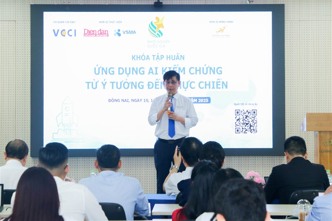 Sáng ngày 10 tháng 11 năm 2025, tại Trường Đại học Lạc Hồng, đã chính thức khai giảng Khóa tập huấn giảng viên nguồn, cố vấn chuyên sâu về khởi nghiệp Đổi mới Sáng tạo (ĐMST) với chủ đề "Ứng dụng AI kiểm chứng từ ý tưởng đến thực chiến!".