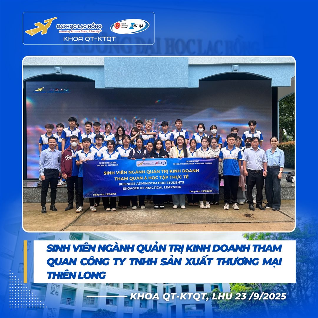 Ngày 23 tháng 9 năm 2025 – Khoa Quản trị - Kinh tế Quốc tế, Trường Đại học Lạc Hồng đã tổ chức chuyến tham quan thực tế đầy ý nghĩa tại Công ty TNHH Sản xuất Thương mại Thiên Long Long Thành cho sinh viên năm 2 ngành Quản trị Kinh doanh (QTKD). Chuyến đi mang đến cơ hội quý báu để sinh viên kết nối lý thuyết với thực tiễn, khơi dậy động lực học tập và định hướng nghề nghiệp rõ nét.