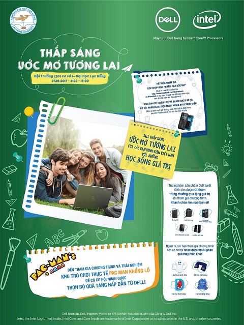 Vào thứ Sáu, ngày 27/10/2017 tại Hội trường I209 và sân trường (Cơ sở 6) - Trường Đại học Lạc Hồng (Số 10, Huỳnh Văn Nghệ, P. Bửu Long, TP. Biên Hòa - Tỉnh Đồng Nai) sẽ diễn ra ngày hội “Thắp sáng ước mơ tương lai” do nhãn hàng công nghệ Dell tổ chức.