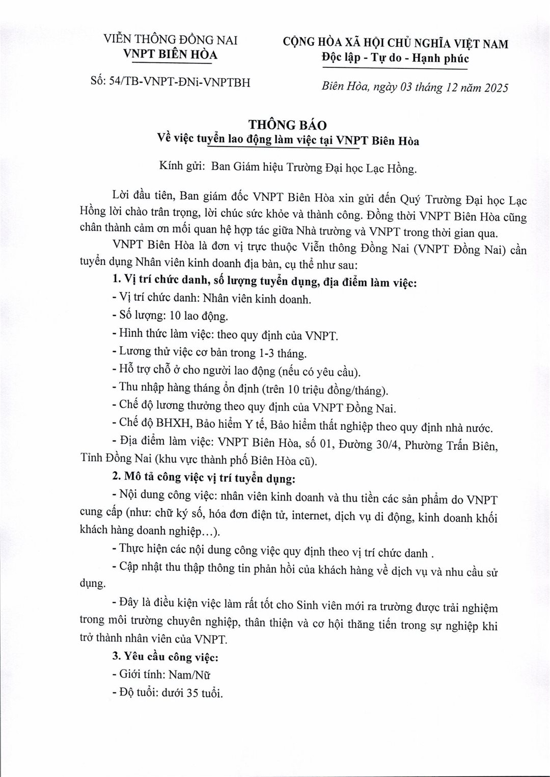Do nhu cầu mở rộng công ty chúng tôi cần tuyển vị trí sau. 1. Nhân viên kinh doanh Chi tiết công việc xem file đính kèm