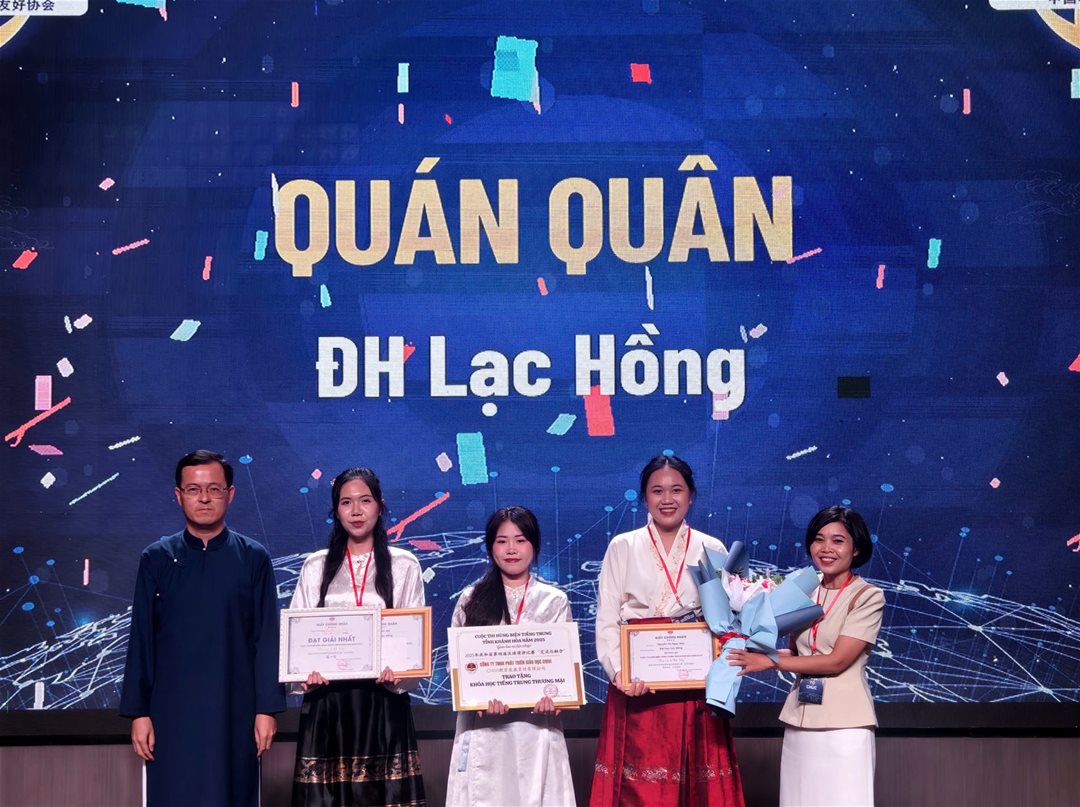 Ba gương mặt đại diện cho đội thi gồm Nguyễn Thị Ngọc Hậu, Lê Thị Yến Nhi và Võ Thị Mỹ Hạnh. Với phong thái tự tin, kỹ năng hùng biện lưu loát và lập luận logic, ba sinh viên đã thể hiện bản lĩnh, trí tuệ cùng khả năng ứng dụng tiếng Trung một cách linh hoạt và thuyết phục. Phần trình bày của đội thi Lạc Hồng không chỉ gây ấn tượng mạnh với ban giám khảo về năng lực ngôn ngữ mà còn truyền tải sâu sắc tinh thần hội nhập, giao lưu văn hóa và sự tôn trọng đa dạng trong xã hội hiện đại.