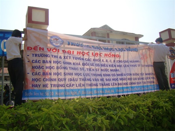Các em học sinh đang tìm hiểu thông tin về trường Đại học Lạc Hồng