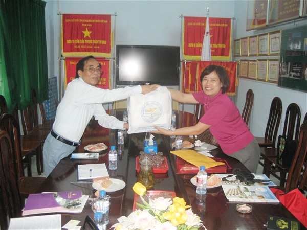 Dr. Tran Hanh and Ms. Anh presenting souvenirs to each other