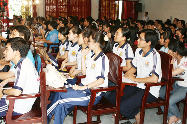 In this enrollment consultancy program, Dr. Tran Hanh also awarded the scholarship worth VND 10 million to students of Ngo Quyen high school.