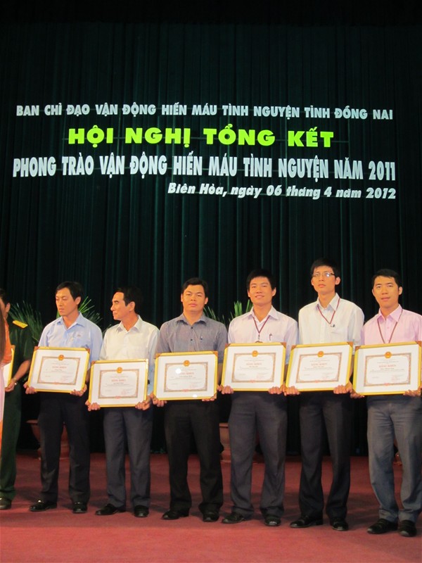 The Dong Nai province’s Steering Committee of the Voluntary Blood Donation Campaign on April 6 held a ceremony to review its blood donation campaign in 2011 at the provincial Conference and Event Center. Attending the ceremony was Vice Director of Cho Ray Regional Blood Transfusion and Haematology Centre Le Hong Anh and Vice Chairman of provincial People’s Committee, Head of provincial Steering Committee on Voluntary Blood Donation Nguyen Thanh Tri.