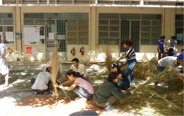 Students making tent