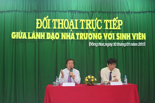 On the morning of January 10, a direct meeting between students and the University Management Board was held at Room A 301 – campus 1 – Lac Hong University. The program was attended by Chairman of the Trustees Board, Rector People’s Teacher Dr. Do Huu Tai, Vice Rectors Dr. Nguyen Van Nam and Lam Thanh Hien, M.A, representatives of offices and faculties and nearly 500 students at all levels.