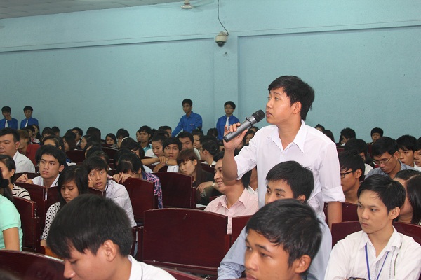 At the program, the participants raised many questions to the Board. These questions mainly focused on areas such as education, scientific research, internships, facilities upgrading, training majors, .... The Board directly responded to these questions.