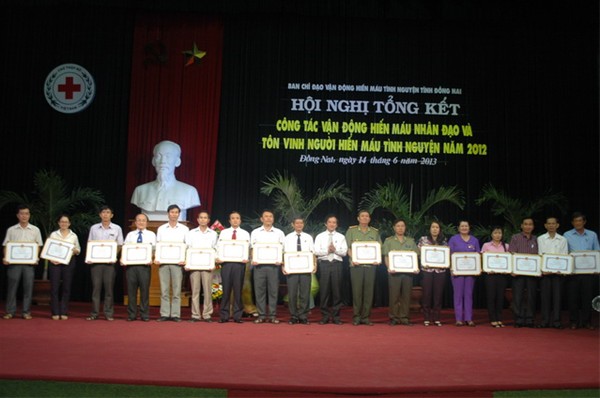 In the morning of June 14, Dong Nai province’s Steering Committee of Voluntary Blood Donation solemnly held a ceremony to honor individuals and collectives for their blood donation efforts 2012. Rector of the University Dr. Diep Cam Thu attended the ceremony together with individuals and collectives who actively participated in humanitarian blood donation programs 2012.