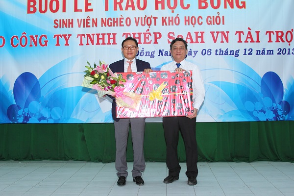 At the scholarship awarding ceremony, representatives of LHU Dr. Nguyen Van Nam and SeAH Steel Corp. Mr. Nam Hyung Kun have delivered speeches on bilateral cooperation between the two sides. Earlier on January 8, 2013 SeAH Steel Vina Corp. awarded scholarships worth $ 5 500 USD (VND 10 500 000 each) to 11 studious poor students. In addition, Mr Nam Hyung Kun expressed his wish to welcome student generations to cooperate and work for the company. The ceremony was also a good occasion for LHU to introduce its construction, development and training activities. It helped students learn more about policies, human resources developing strategies and annual scholarship programs of SeAH Steel Vina Corp.