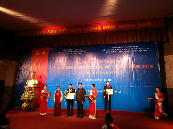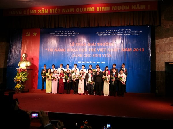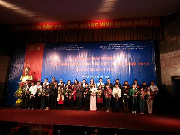 Recently, Vietnam Young Science Talent Award 2013 was solemnly held in Hanoi on January 4 by the Ministry of Education and Training (MOET) in cooperation with the Ministry of Science and Technology, the Vietnam Union Of Science And Technology Association (Vietnam Fund For Supporting Technological Creations - VIFOTEC), the Central Committee of Ho Chi Minh Communist Youth Union, Vietnam Television and Vietnam Chamber of Commerce and Industry (VCCI). The awarding ceremony saw the presence of Vice President Nguyen Thi Doan, Minister of Education and Training Pham Vu Luan and Minister of Science and Technology Nguyen Quan.