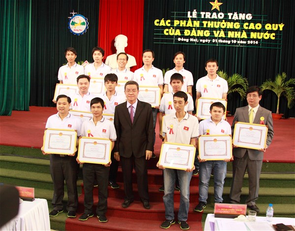 In the morning of October 31, a solemnly ceremony was organized at Dong Nai provincial Event and Convention Center to offer noble rewards of the Party and the State. This is the second time the province has held such ceremony to honor collectives and individuals for their significant contributions to the province’s construction and development. Lac Hong University was honored to receive Third Class Labor Medal of the Prime Minister for its excellent achievement at 2014 ABU Asia-Pacific Robot Contest held in August in India.