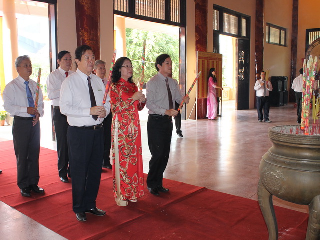 Rector Do Huu Tai and provincial leadership burnt incense at Tran Bien Temple of Literature.