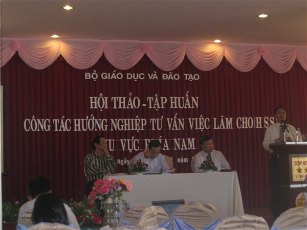 Recently, the two day seminar of November 5th and 6th , 2010 took place in Vung Tau with the theme "Training on vocational guidance, employment counseling for students in the Southern region” held by the Ministry of Education and Training with the participation of Dr. Dang Duy So (Director), Tran Dung, M.A (Vice Director) of Center for International Relations Overseas Study and Employment - Lac Hong University.