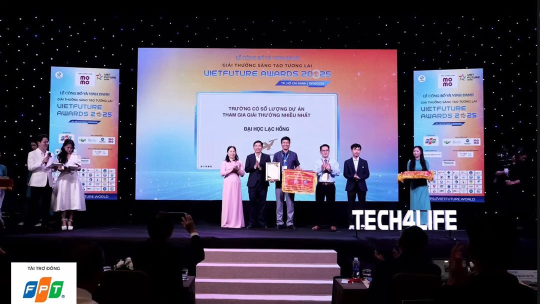 Trường Đại học Lạc Hồng đã lập nên dấu ấn đặc biệt tại VietFuture Awards 2025 khi xác lập kỷ lục với 14 đội thi, được vinh danh là đơn vị có số dự án tham gia nhiều nhất toàn quốc. Thành tích này không chỉ khẳng định vị thế tiên phong của trường trong phong trào khởi nghiệp và đổi mới sáng tạo, mà còn lan tỏa mạnh mẽ tinh thần dám nghĩ, dám làm tới toàn thể sinh viên và giảng viên của nhà trường.