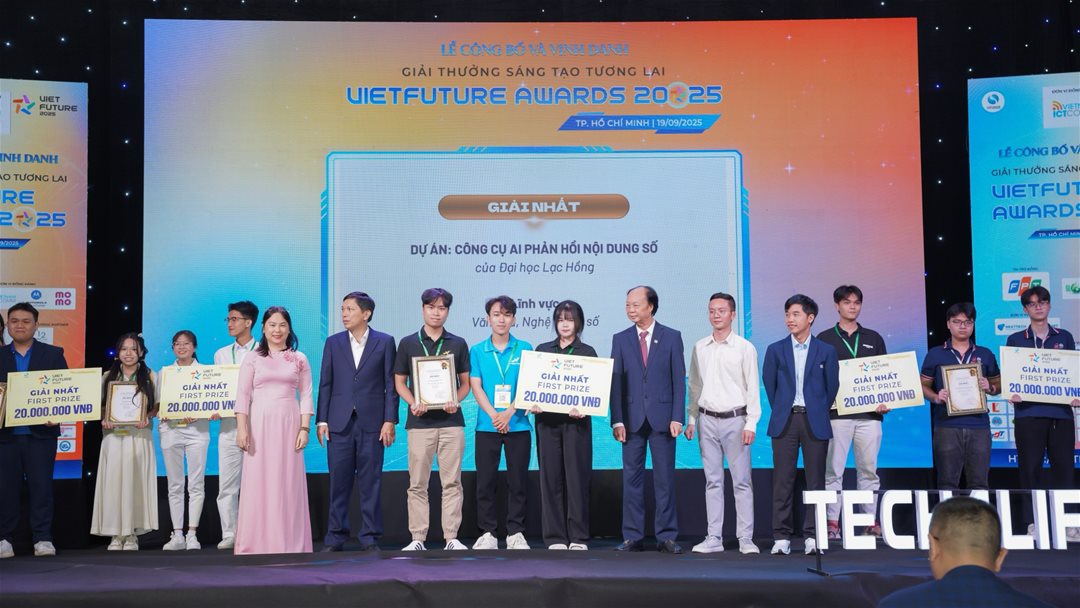 Thành công vang dội tại VietFuture Awards 2025 đã khẳng định vị thế của Trường Đại học Lạc Hồng trong việc nuôi dạy thế hệ công nghệ trẻ. Thành tích 14 đội tham gia, hai giải cao nhất là minh chứng sống động cho phương châm của mô hình giáo dục ứng dụng và sự tận tâm của đội ngũ giảng viên.