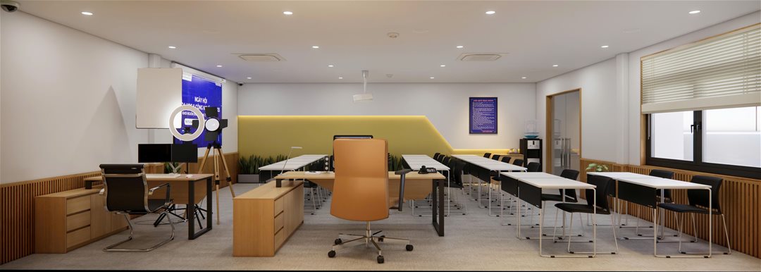 • Khu vực làm việc chính với 20 bộ bàn ghế sinh viên, khuyến khích thảo luận và sáng tạo.