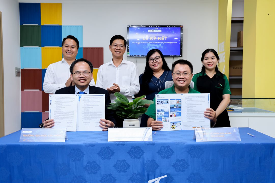 Sau phần phát biểu, Trường Đại học Lạc Hồng và Công ty Tiên Khanh đã thực hiện lễ ký kết hợp tác chính thức, trao biên bản ghi nhớ và quà lưu niệm, đánh dấu cột mốc hợp tác quan trọng giữa hai đơn vị.