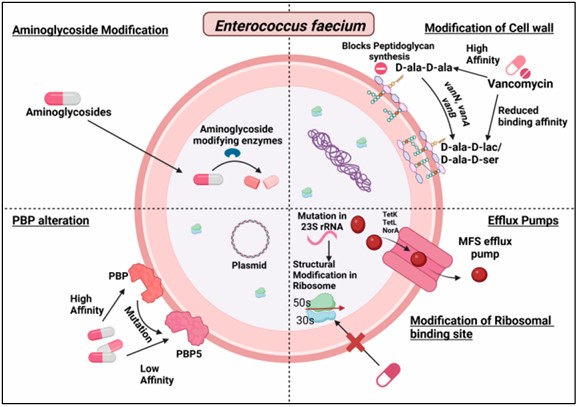 Figure 3. Antibiotic resistance mechanisms of E. faecium
