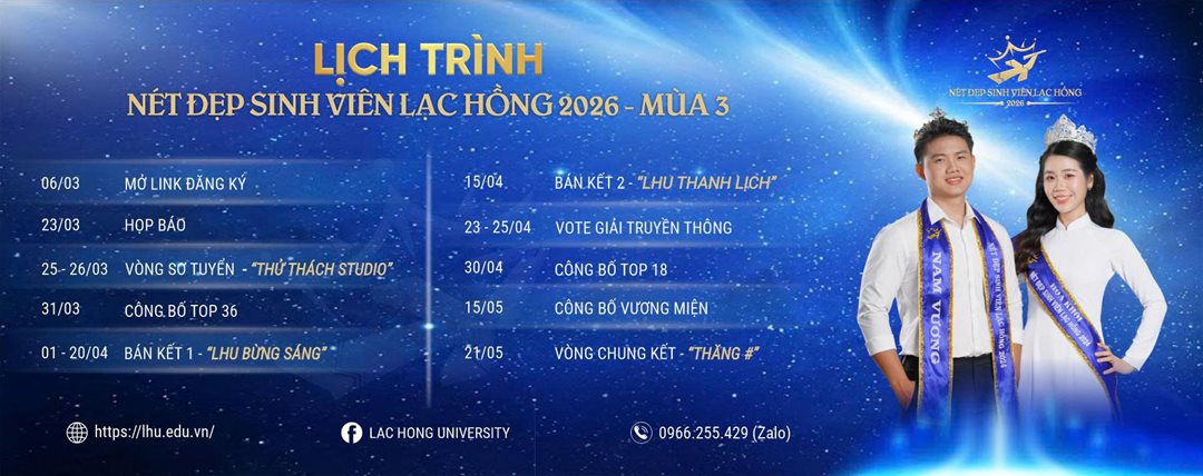 Lịch trình cuộc thi Nét đẹp sinh viên Lạc Hồng 2026